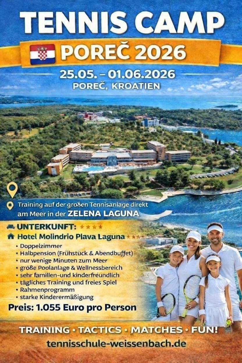 Seit über 35 Jahren veranstalten wir das traditionelle Tenniscamp in Porec/Kroatien an der Adria. Ein idealer Tennis-und Aktivurlaub für alle Spielstärken, egal ob Anfänger oder Turnierspieler.